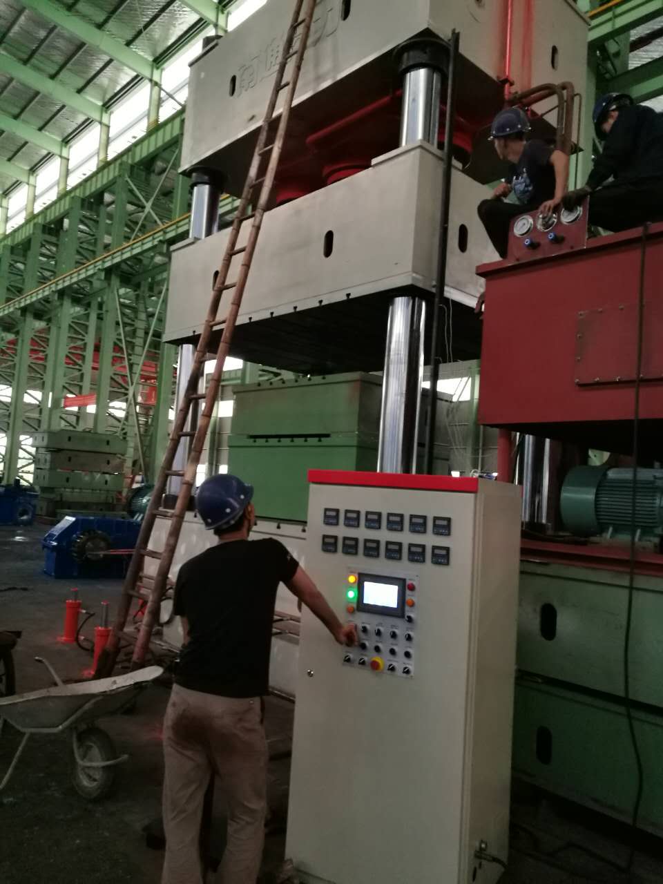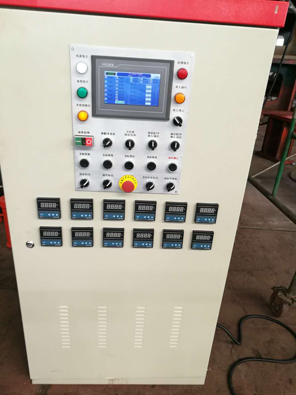 Computer optimized design, four pillar type construction is simple, economic and practical; Frame type rod pre-load structure rigidity, the four eight side guide rail, orientation precision, partial load resistance is strong; Hydraulic control USES the cartridge integrated system, reliable operation, long service life, small hydraulic impact, reduced the connecting line and leak; Imported PLC control of the electrical system, the structure is compact, sensitivity and reliable work, convenient use and maintenance. Has the adjustment, manual, semiautomatic three kinds of operation mode, which can realize fixed distance and constant pressure molding process adjustment. Sill is equipped with a hydraulic cushion inside, through the choice of operation panel, hydraulic cushion can be achieved with ejection, no ejection and hydraulic cushion and three work cycle.